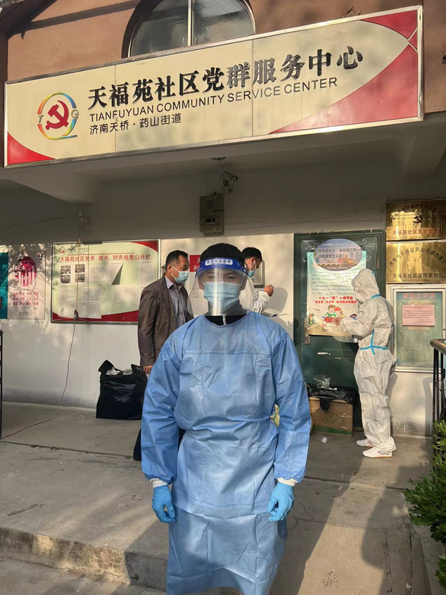4月27日一早,來自濟南科技創(chuàng)業(yè)投資集團有限公司黃金和張澤陽就趕赴胥家村,站好健康查驗點的第一班崗;濟南經(jīng)發(fā)基金管理有限公司的崔家浩與天橋區(qū)天福苑檢測點人員正做著做好核酸檢測維持秩序工作;濟南產(chǎn)發(fā)資產(chǎn)管理有限公司的任政分配到槐蔭區(qū)興福街道濟西社區(qū),與其他參與防疫的人員一起接受崗前培訓(xùn)后,迅速上崗;濟南經(jīng)發(fā)中小企業(yè)服務(wù)有限公司的謝炳怡與小鴨集團的劉玉峰、金德利集團的劉相濤一起前往高新區(qū)臨港街道,接受工作任務(wù)。隨后,趙梓淇、董振興、高志翔、張樂等幾名同事也投身于防疫的志愿者隊伍中。